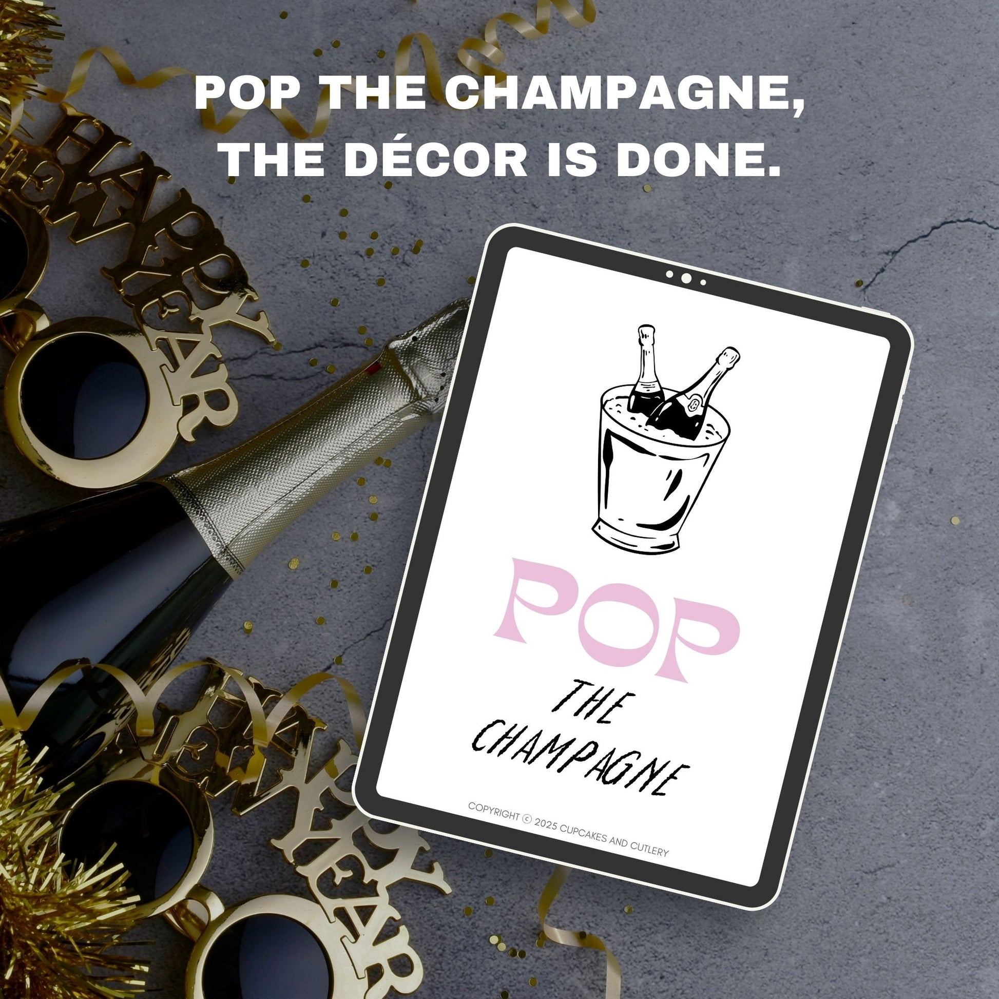 Kick off the new year with confetti vibes (cleaning up real confetti SUCKS), not chaos. These printables are the shortcut to instant sparkle — so you can spend less time stressing about décor and more time practicing your champagne pop.